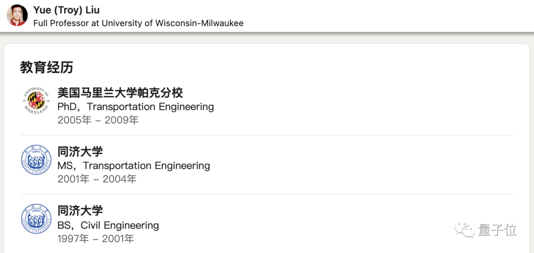 资料显示,这位41岁的前教授本硕毕业于同济大学,2009年在马里兰大学拿到工程博士学位,同年加盟UWM任助理教授。