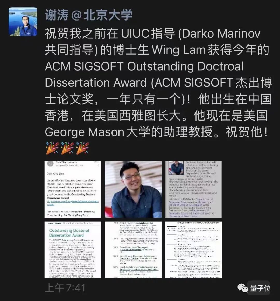 [1]https://www.sigsoft.org/awards/dissertationAward.html[2]https://cs.gmu.edu/~winglam/[3]http://www.51testing.com/html/45/n-4462645.html