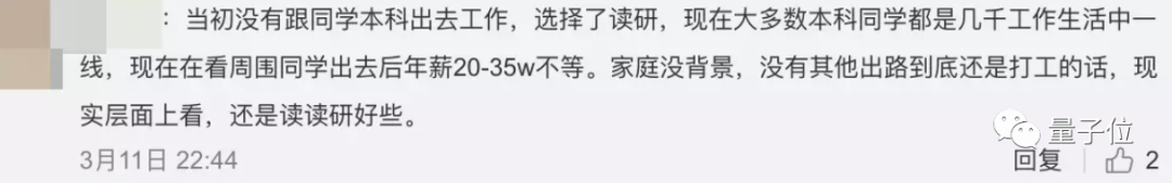 在关于研究生学历的讨论之中,也有人留下了这样的评论: