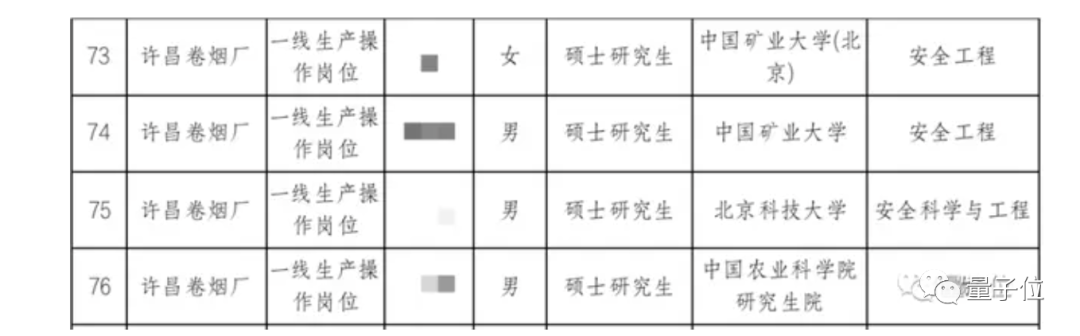 还有去年引发热议的“人大武大毕业卷香烟”的新闻,深挖之下发现,这家卷烟厂流水线上的研究生比例超过30%,也不乏“双一流”高校的研究生: