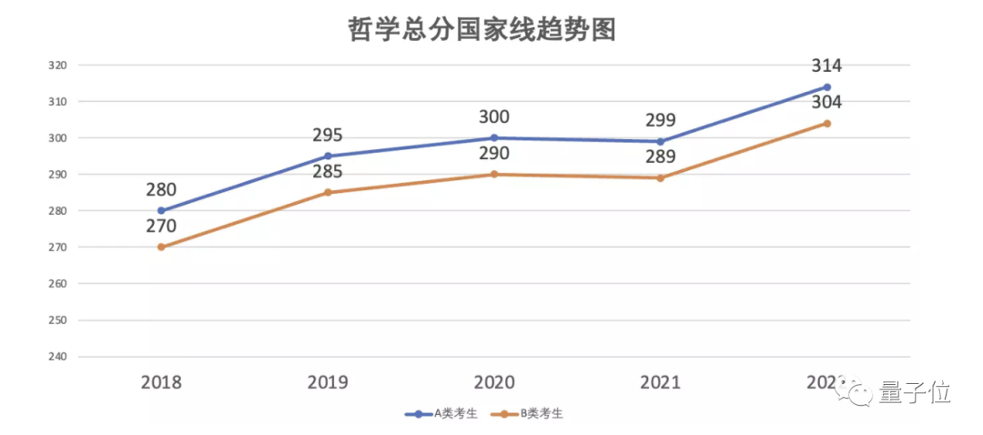 例如以哲学为例,今年的总分高达314分,相比于去年的299分,上涨15分。