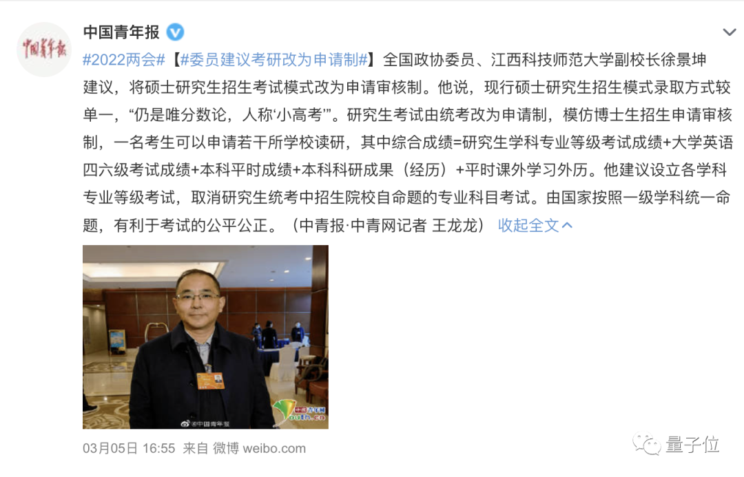 在国家线出分的6天前,全国政协委员、江西科技师范大学副校长徐景坤就建议: