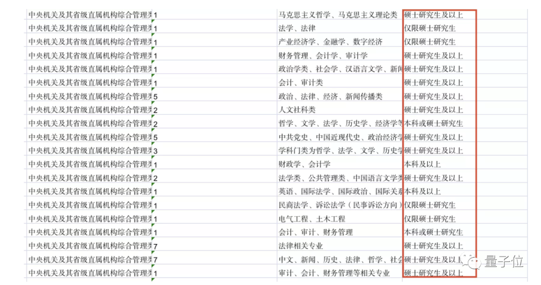 还是以2022年的国考公告为例,从已公布的职位表看,中央机关超过一半的岗位需要硕士研究生及以上的学历:
