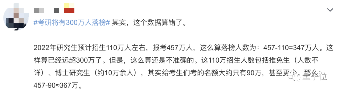 对于“300万人将落榜”的说法,也有网友站出来表示质疑——算少了: