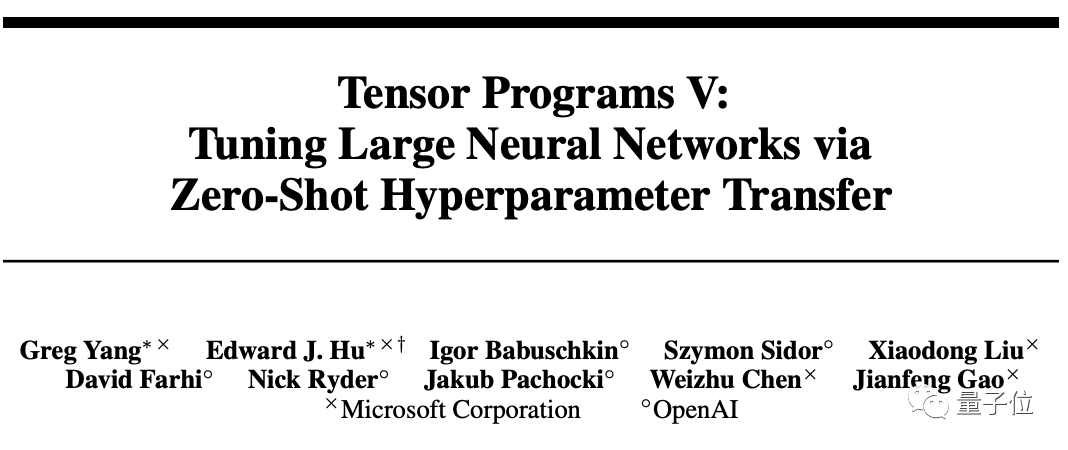 方法名叫muP (Maximal Update Parametrization),作者分别来自微软和OpenAI。