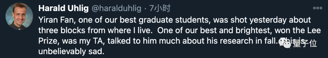 他曾获得过Lee Prize,也是我的助教,在秋天的时候一起交流了很多与他研究相关的内容……难以置信的悲伤。