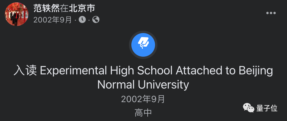 他高中就读于北京师范大学附属实验中学,通过自主招生的方式,进入北京大学光华管理学院,攻读金融专业。