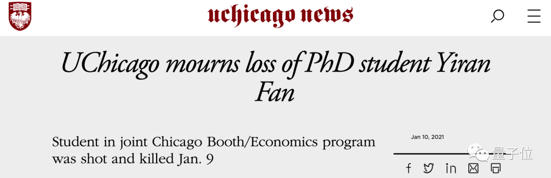事发之后,当地时间1月10日,芝加哥大学官网也发文对于范轶然的不幸离世表示悼念。