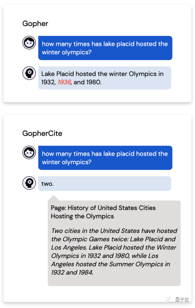 DeepMind表示,WebGPT是通过多次访问网页来组织答案,GopherCite则是侧重于读取长文段。