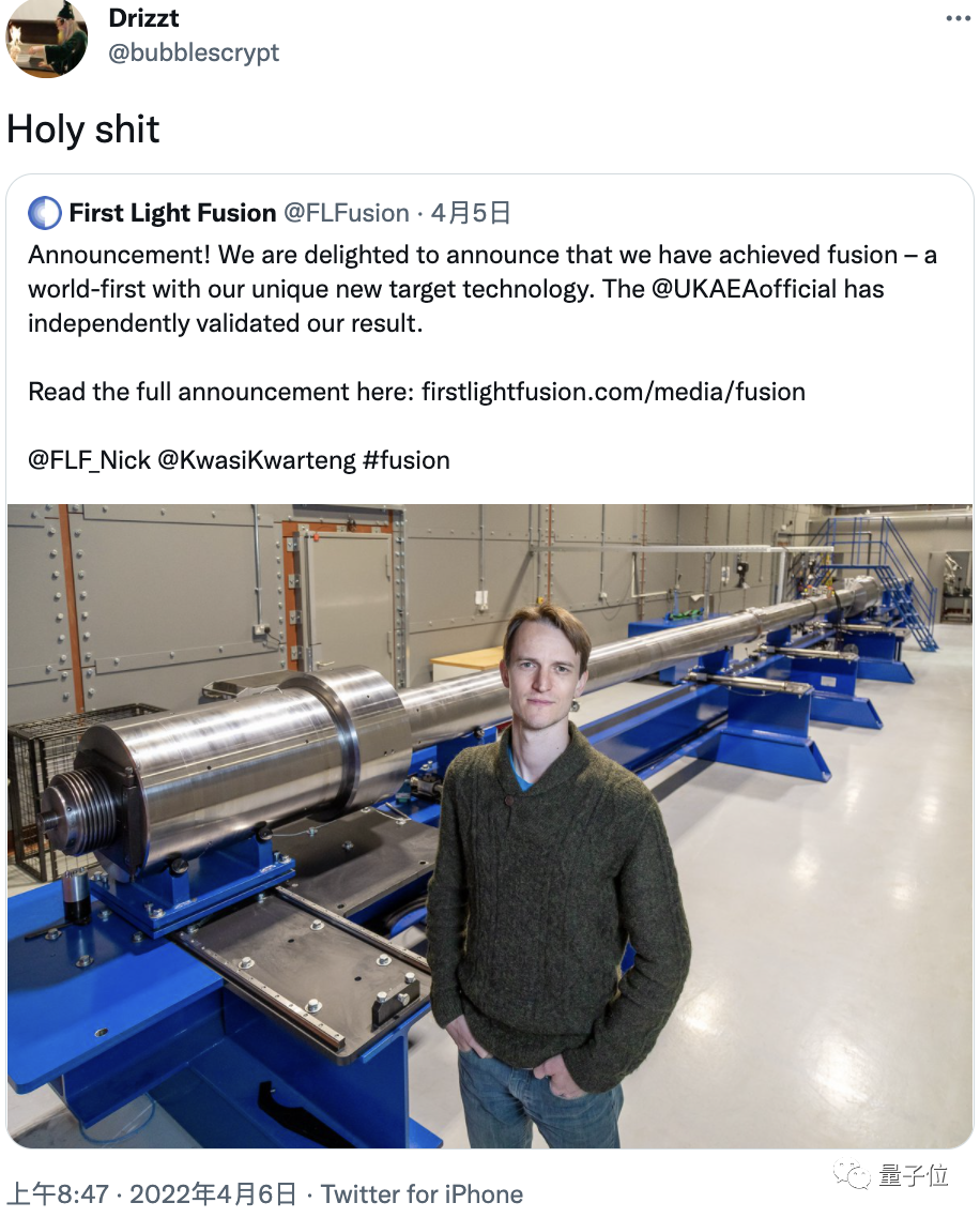 参考链接:[1]https://www.bloomberg.com/news/articles/2022-04-04/u-k-startup-s-big-friendly-gun-achieves-fusion-breakthrough[2]https://firstlightfusion.com/media/fusion