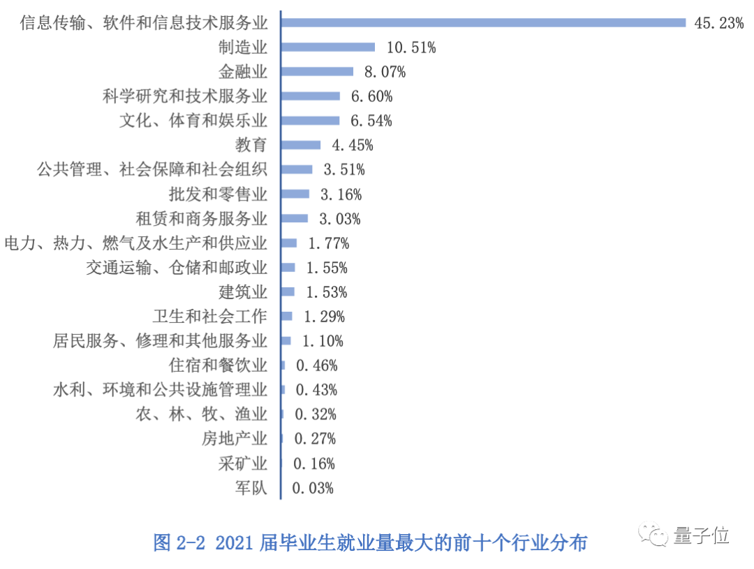 研究生从事信息技术行业的占比更大,甚至占到总体人数的一半以上。