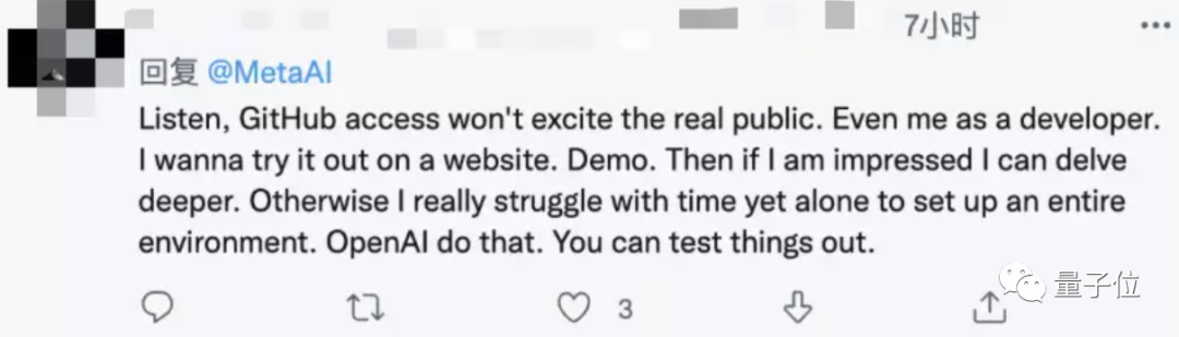也有开发者建议Meta像OpenAI一样提供一些Demo,如果大家看到效果会更愿意参与研究改进,不然的话光是搭建开发环境就挺劝退的。