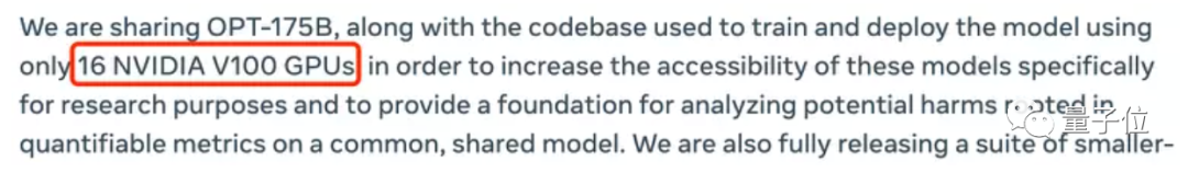 甚至Meta AI表示,最低只需要16块英伟达V100 GPU,就能训练并部署OPT-175B模型。