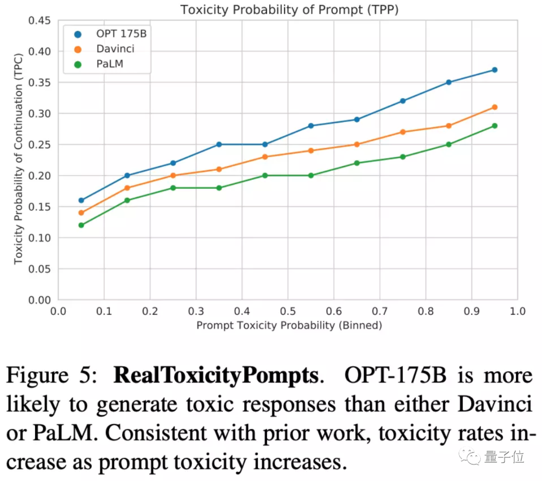 当然,Meta AI也不避讳谈及OPT-175B大模型面临的一些问题,例如更容易生成“毒性语言”(例如使用有攻击性的词汇、语言歧视等):