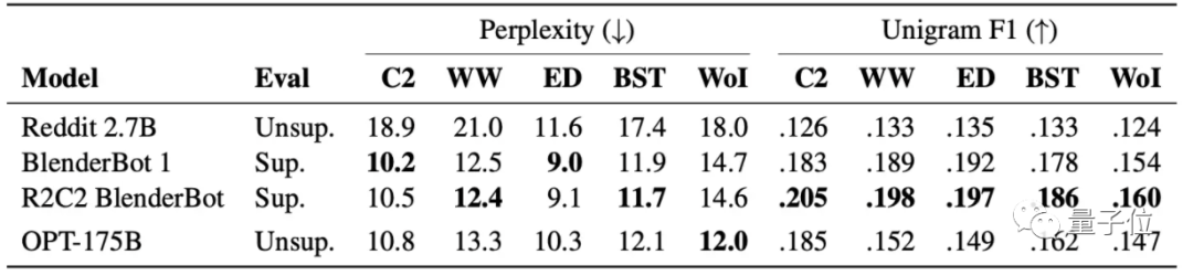 再看具体任务。在对话任务中,采用无监督学习的方法训练OPT-175B,效果和监督学习训练的几类模型相近:
