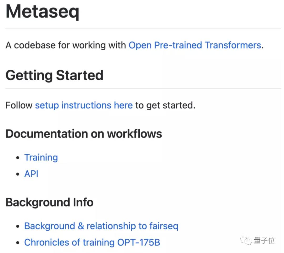 训练和部署的代码工具包metaseq发布在GitHub,并配有使用教程和文档。
