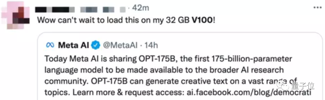 参考链接:[1]https://ai.facebook.com/blog/democratizing-access-to-large-scale-language-models-with-opt-175b/[2]https://www.technologyreview.com/2022/05/03/1051691/meta-ai-large-language-model-gpt3-ethics-huggingface-transparency/[3]https://twitter.com/MetaAI/status/1521489996145958914