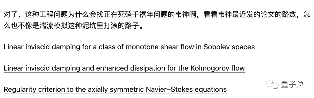 其中就包括一个著名问题——Navier-Stokes方程,曾被美国克雷数学研究所列为7大千禧年难题之一,与黎曼猜想、庞加莱猜想并列。