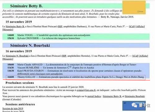 其研究成果还专门被世界闻名的布尔巴基讨论班在当年(2019年)组织专题研讨。