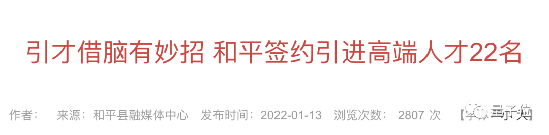 到2022年,和平县计划引进人才82名,810份报名表中有31名博士和700多硕士“挤破了头,因报名人数大大超出预期,甚至导致面试工作延期。