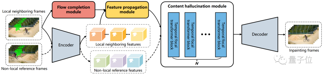 具体来说,对于流完成模块,该方法直接在mask viedo中一步完成操作,而不是像此前方法采用多个复杂的步骤。