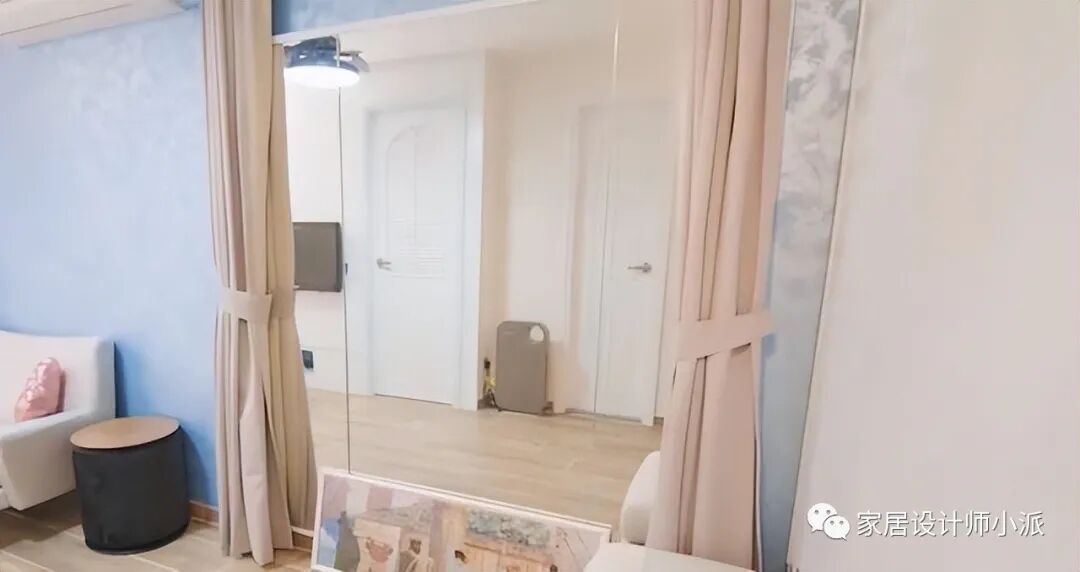 最初,业主觉得空间太小,担心装上镜子后,会影响客厅的整体效果。结果这面镜子却给她惊喜,不仅没有占地方,而且因为透视反射的缘故,反而让客厅更显大。