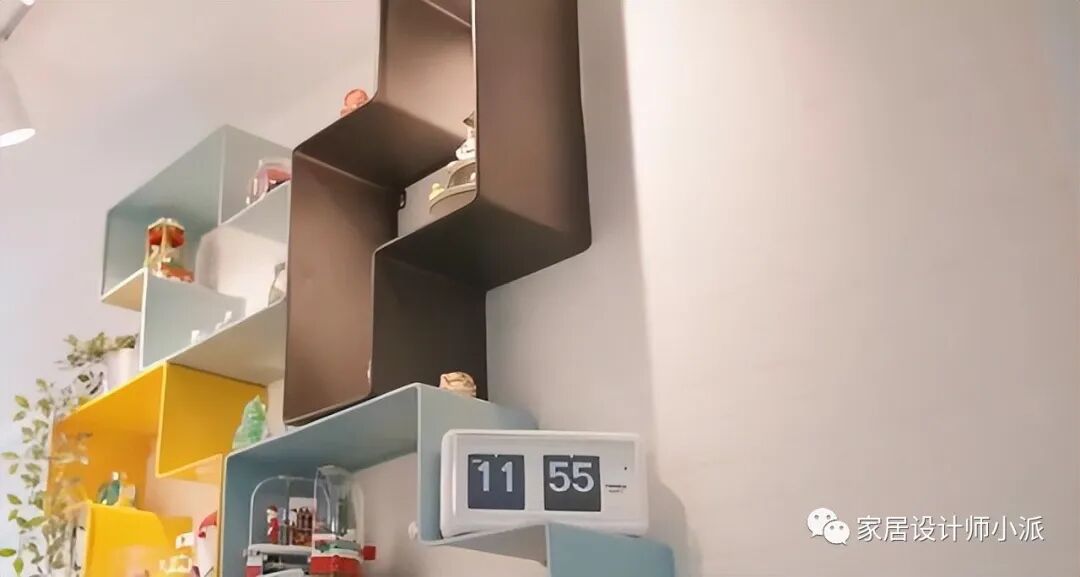 置物架的色彩丰富,且造型多变精致,用来装饰白色的墙面最合适不过。喜欢的工艺品、小摆件,都能随手放在置物架上。