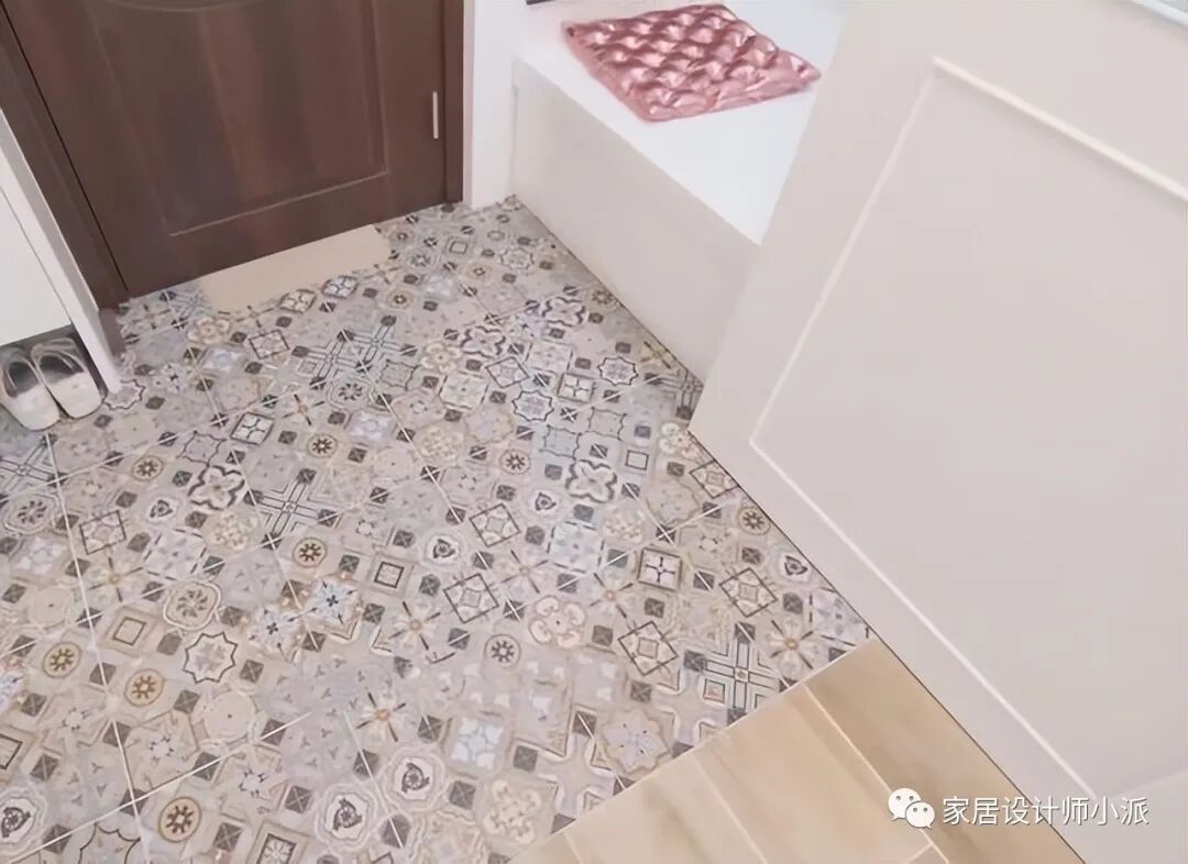 门厅处特意做了区分,通过花色的瓷砖和木地板,就把换鞋区巧妙地分割出来。而正厅位置,则用了浅色的木地板。