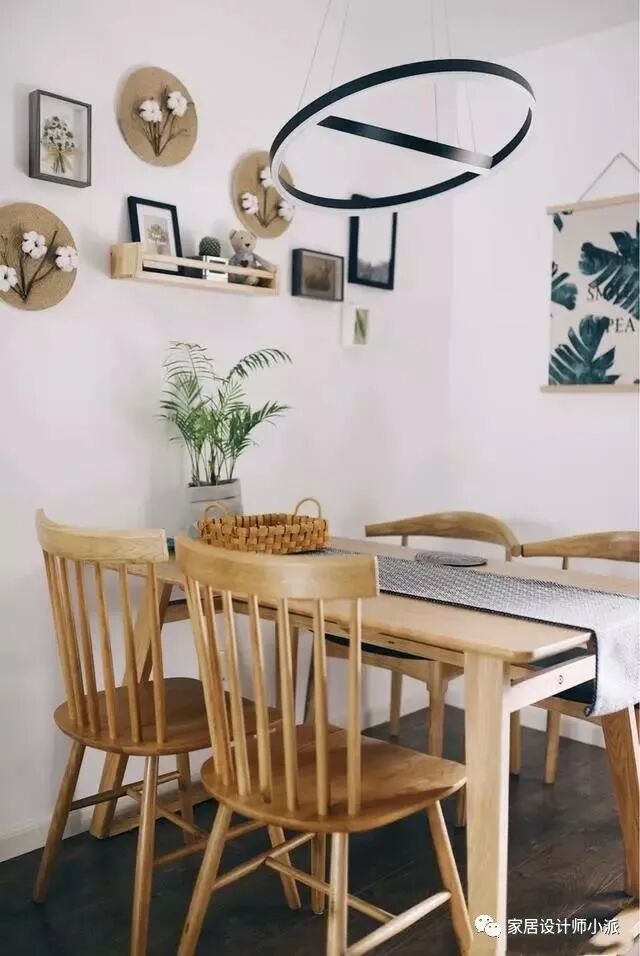 餐桌上方的创意圆环吊灯很有设计感,营造浪漫温馨的用餐氛围。