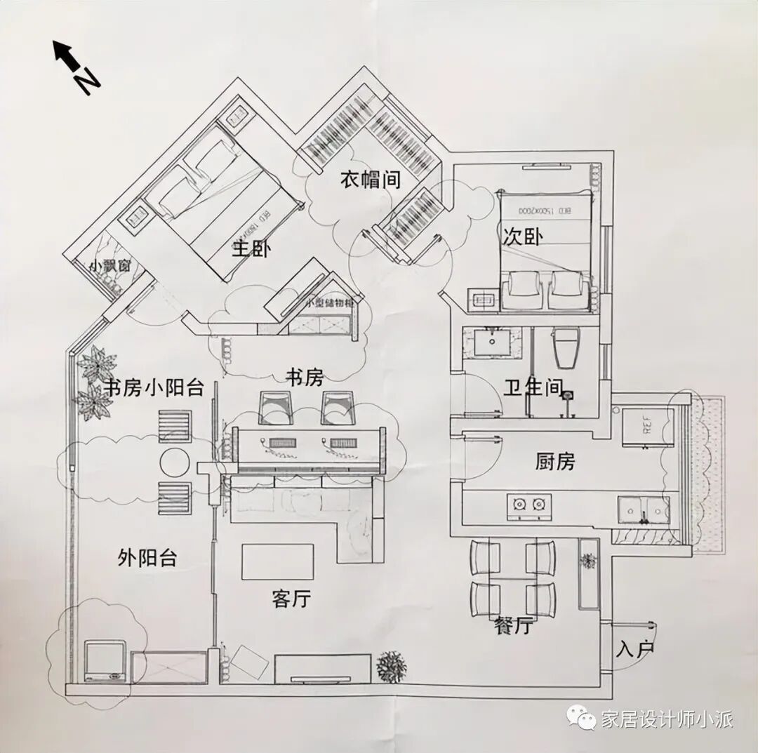 ③设计后的主卧和阳台连通,衣帽间、书房、大小阳台和飘窗应有尽有。