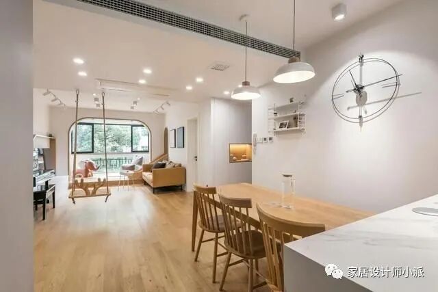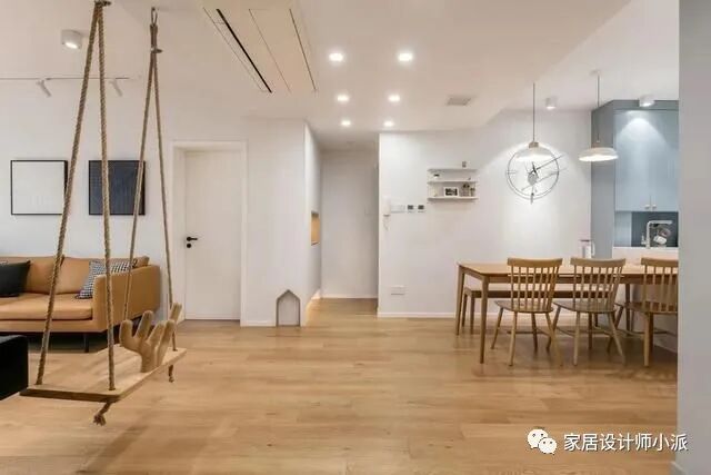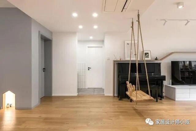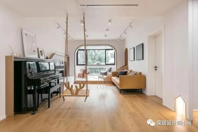 因为家里有个小公主,所以在新房的设计上还添加了很多童真童趣的元素,特别是客厅的秋千与滑滑梯。