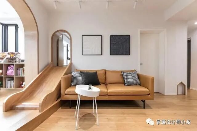 皮质沙发搭配上木质滑梯,这种奇异的搭配感,非常的优雅写意。