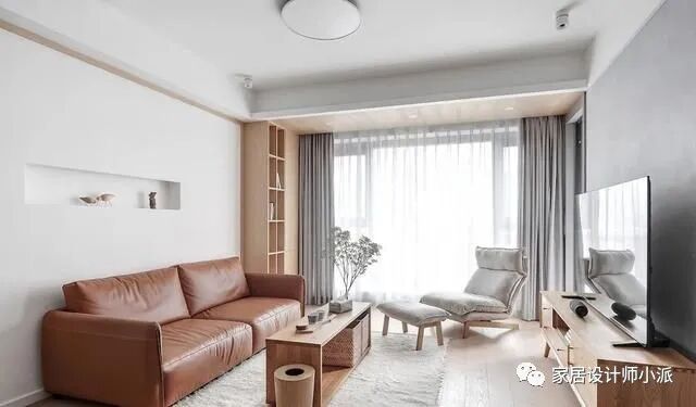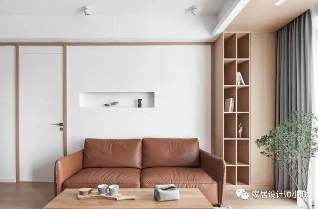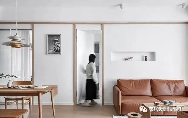 大量留白+原木元素,给室内更多呼吸空间。长虹玻璃门和沙发背后的隐藏门更是大有门道!