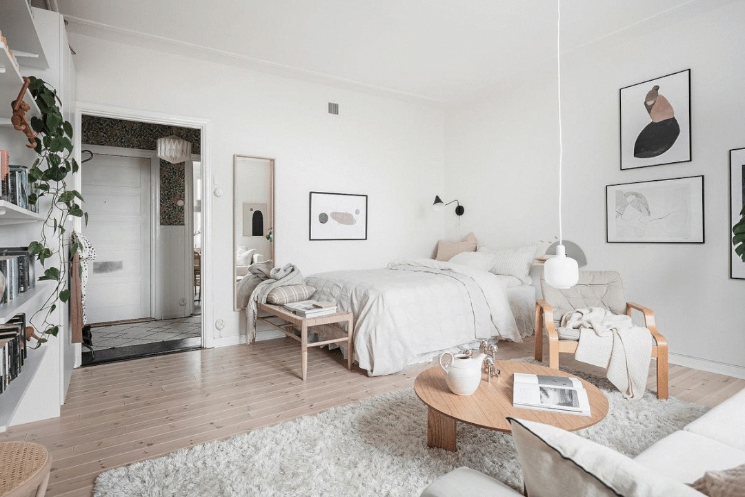 小户型做不到功能区独立,要想兼顾休息区与娱乐休闲区,又想要宽敞通透的空间,那么就不能对空间进行分隔,只能合二为一。