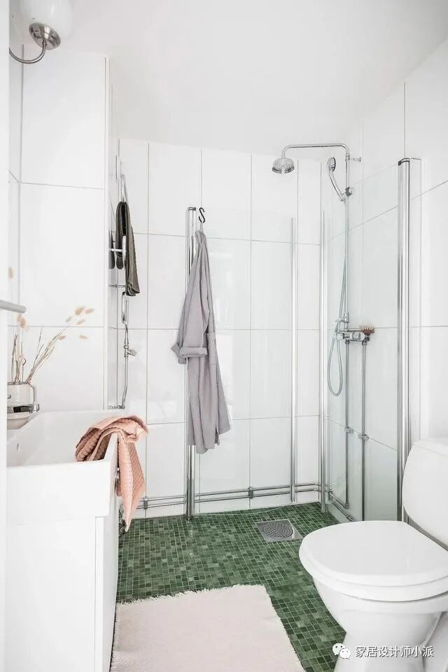 ③小浴室设计可转动玻璃屏风,作为干湿分离的隔断,不用时可以收纳在墙边,整个浴室更加通透宽敞。