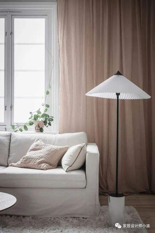 藕粉薄纱窗帘、羊绒地毯,让整个空间的氛围更加柔和。