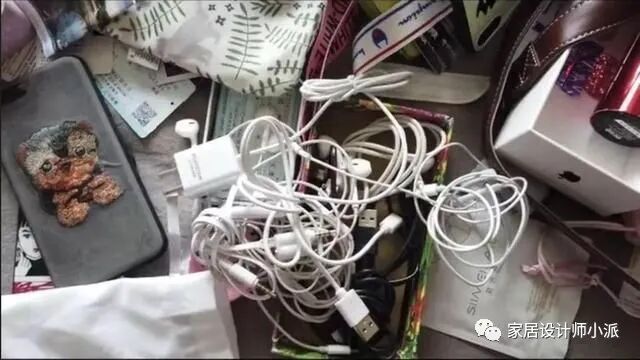 玄关柜里还有一些过期的会员卡、各种用不到的名片,换了手机却没舍得扔掉的数据线、充电线。还有用过一两次舍不得扔掉的鞋套,建议扔掉,让玄关柜更整洁。