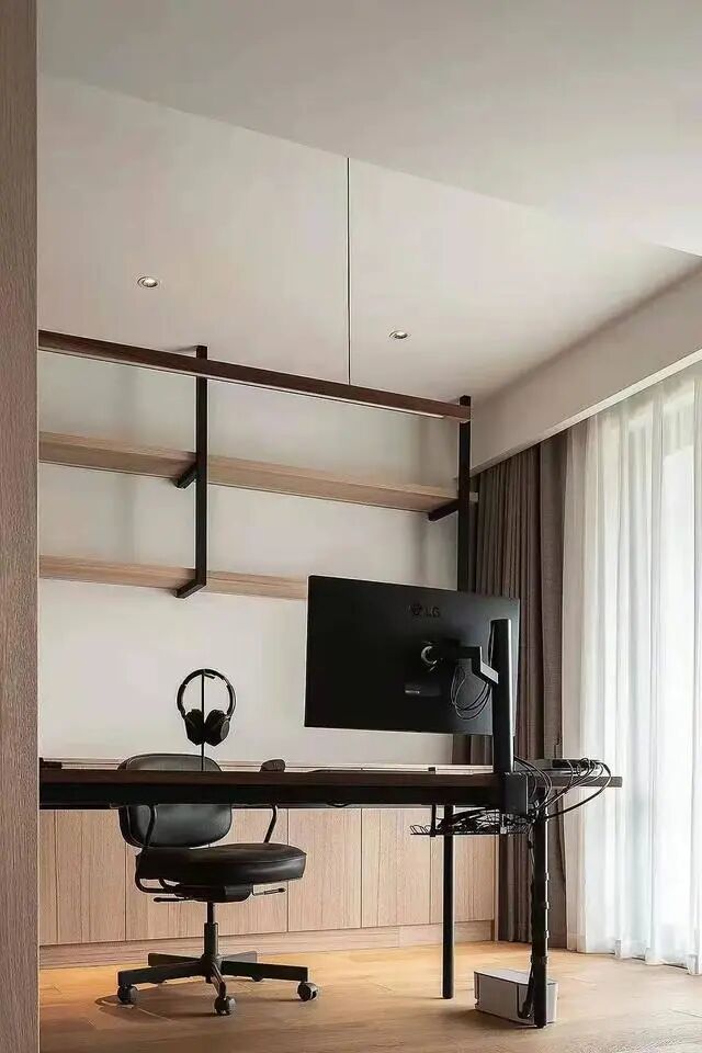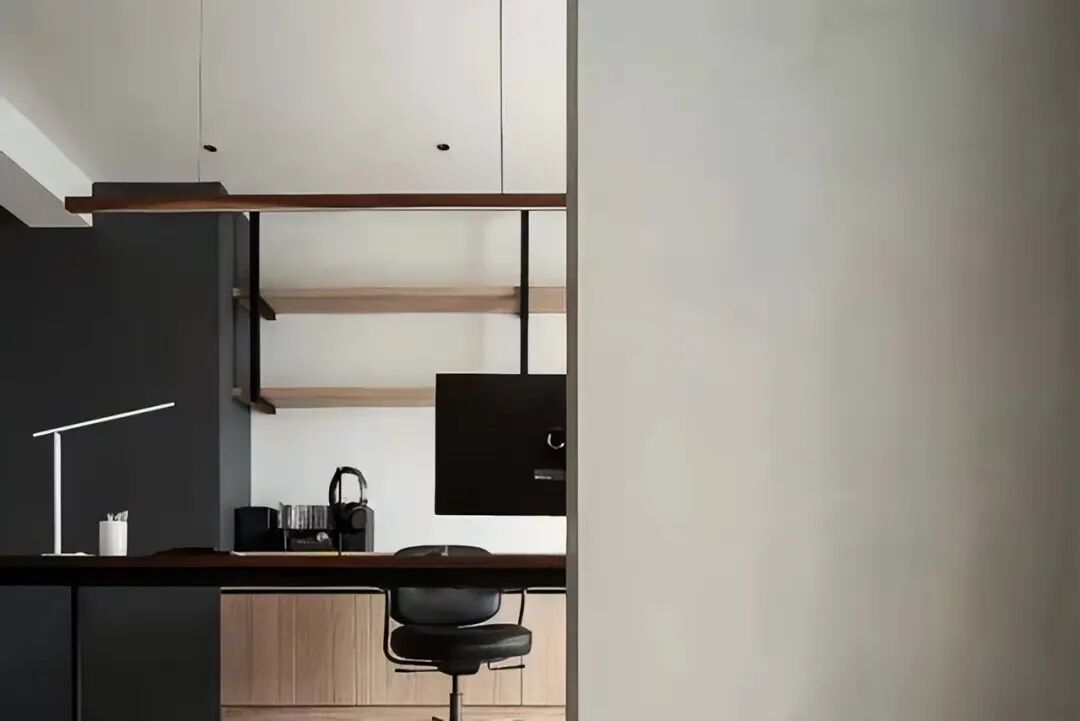 业主的办公空间简直是一幅非常赏心悦目的视觉盛宴。不同颜色的黑色,打造了不同的光影。整个空间,都显得非常深邃和层次感。