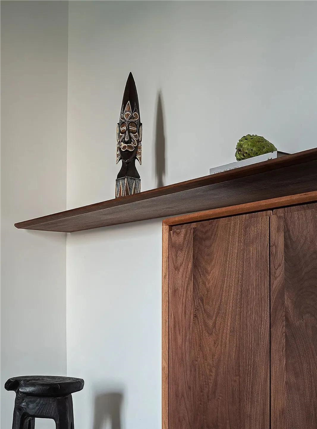 黑白灰的空间需要不同颜色的跳色过渡,这样空间才不会沉闷,而不同颜色的木头搭配起来是非常高级的。