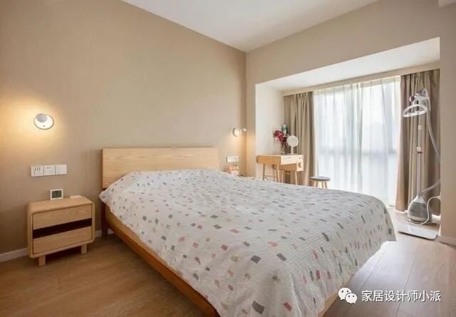 浅黄色从床头背景色,和室内所有的家具,都有异曲同工之妙,那就是颜色极为相近。就连床头灯,也是那样的简单和普通,可是夜晚灯光亮起来的那刻,又觉得如此温暖。