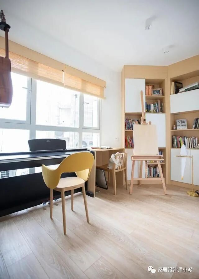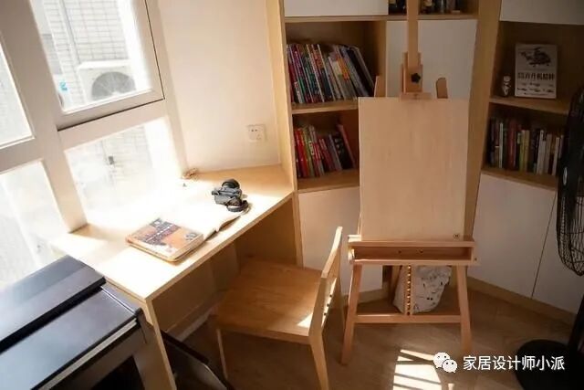拐角设计的书柜,依旧是白色+原木色的设计,满满的都是书籍。坐在小书桌前,看着喜欢的位置,享受着阳光的沐浴,好希望生活就停留在这一刻。