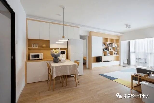 一体式的客餐厅,所以客厅和餐厅的设计风格一致。对称的到顶柜设计,反而显得格外协调。