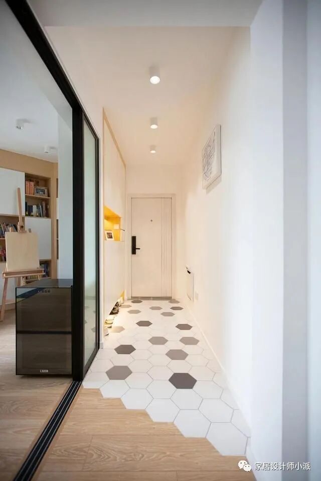 从入户的玄关开始,就已经让人心动不已。六边形地砖,好像在告诉所有人:欢迎回家。