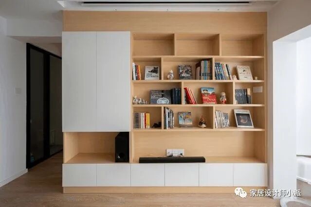 走进客厅,原木色的地板砖,营造出小清新的氛围感。电视背景墙的位置,做了整面的到顶收纳柜,满足客厅的一切收纳需求。
