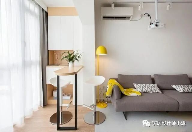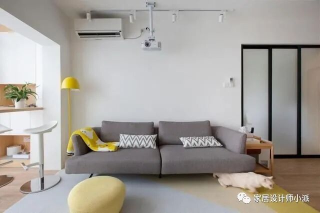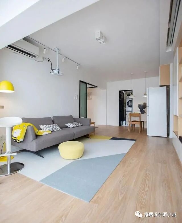 尤其是沙发边亮黄色的落地灯,绝对是点睛之笔。仅此一眼,就会被它的颜值和设计吸引。