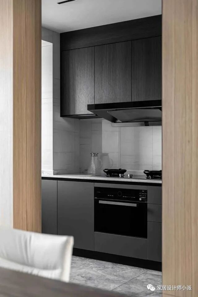 对比之下,反而是深色系的厨房更实用。尤其是黑色的藏污能力很强,打扫卫生时更省时省力。