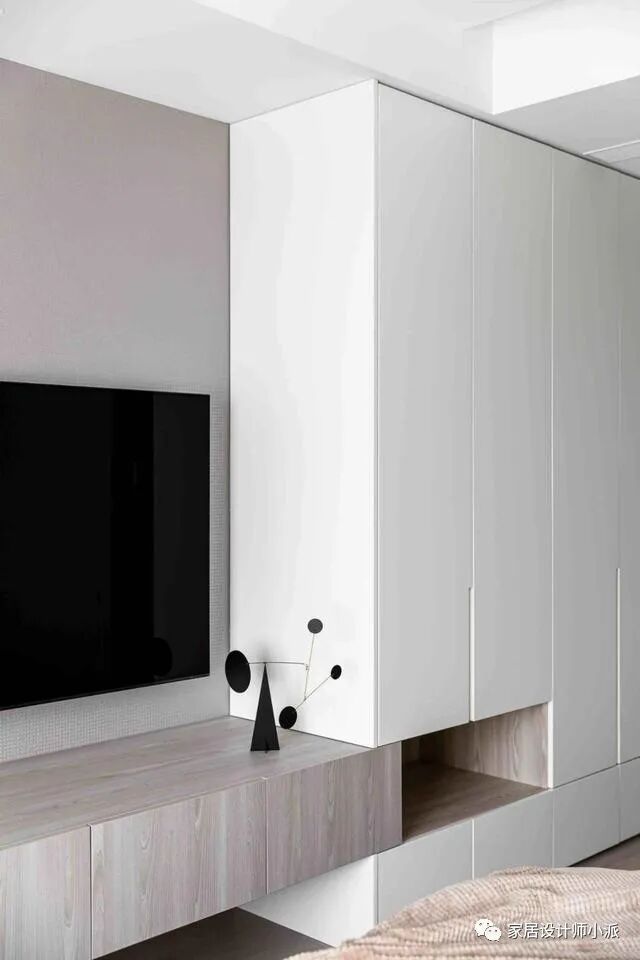 床尾,做了简约的电视墙。躺在床上,刷着自己喜欢的电视节目,想想都觉得幸福。