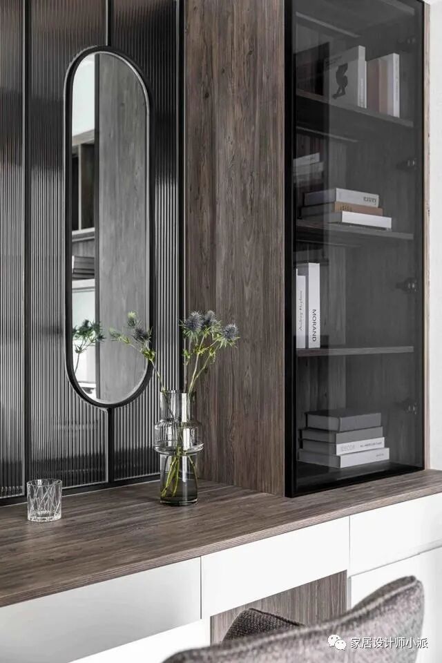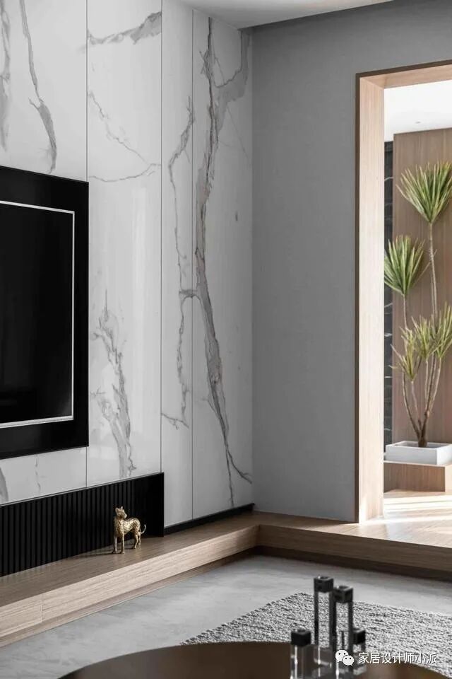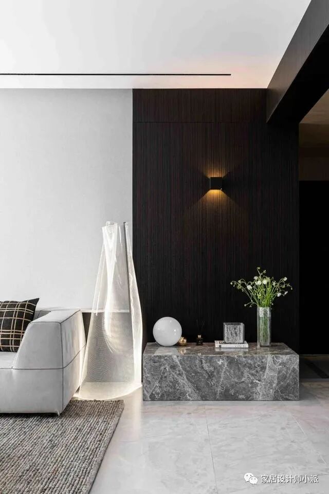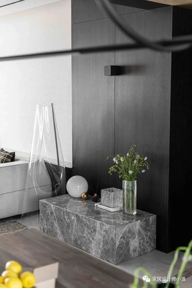 一块灰色系的大理石放在边角柜,随意摆放一束绿意盎然的花束,瞬间就显得不那么冰冷,充满了生活的气息。