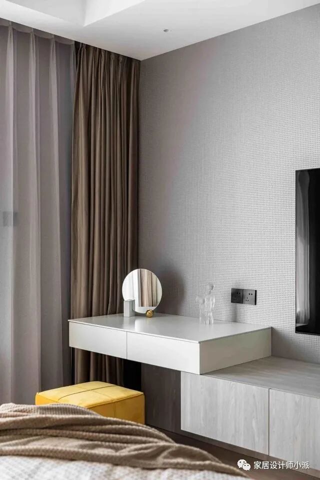 电视柜的一侧,延伸出一张简约的化妆桌,真的把“物尽其用”做到了极致。