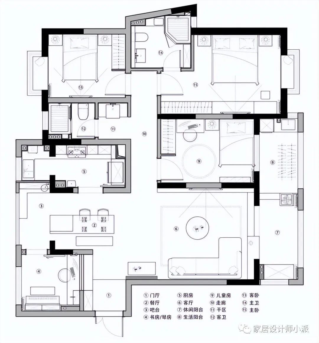但完工后的效果真叫一个高级,原木与大理石元素碰撞,既是极简又是极奢,晒一晒!▼平面布置图